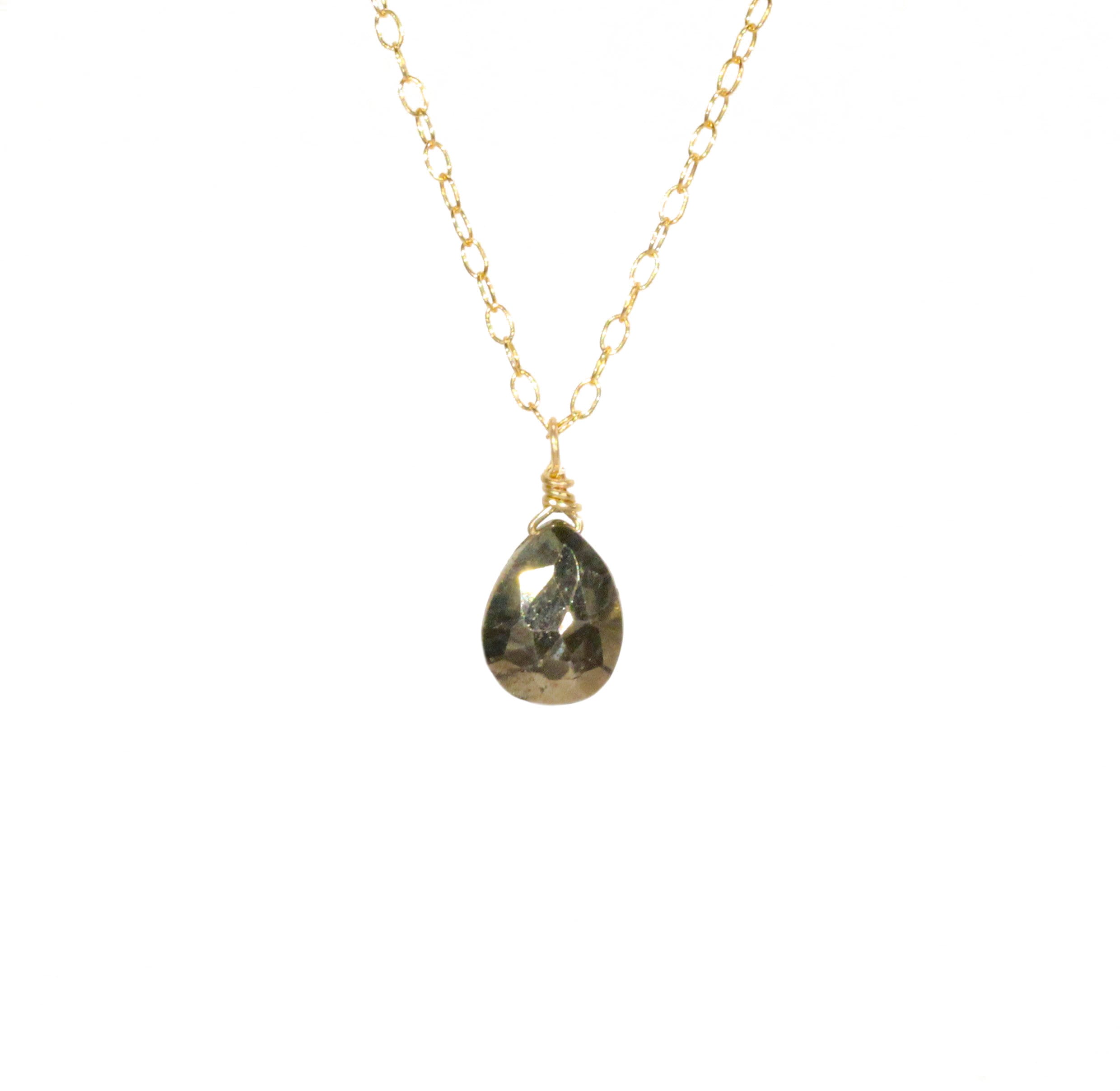Dainty Pyrite Teardrop Necklace: 14k Gold Filled Chain