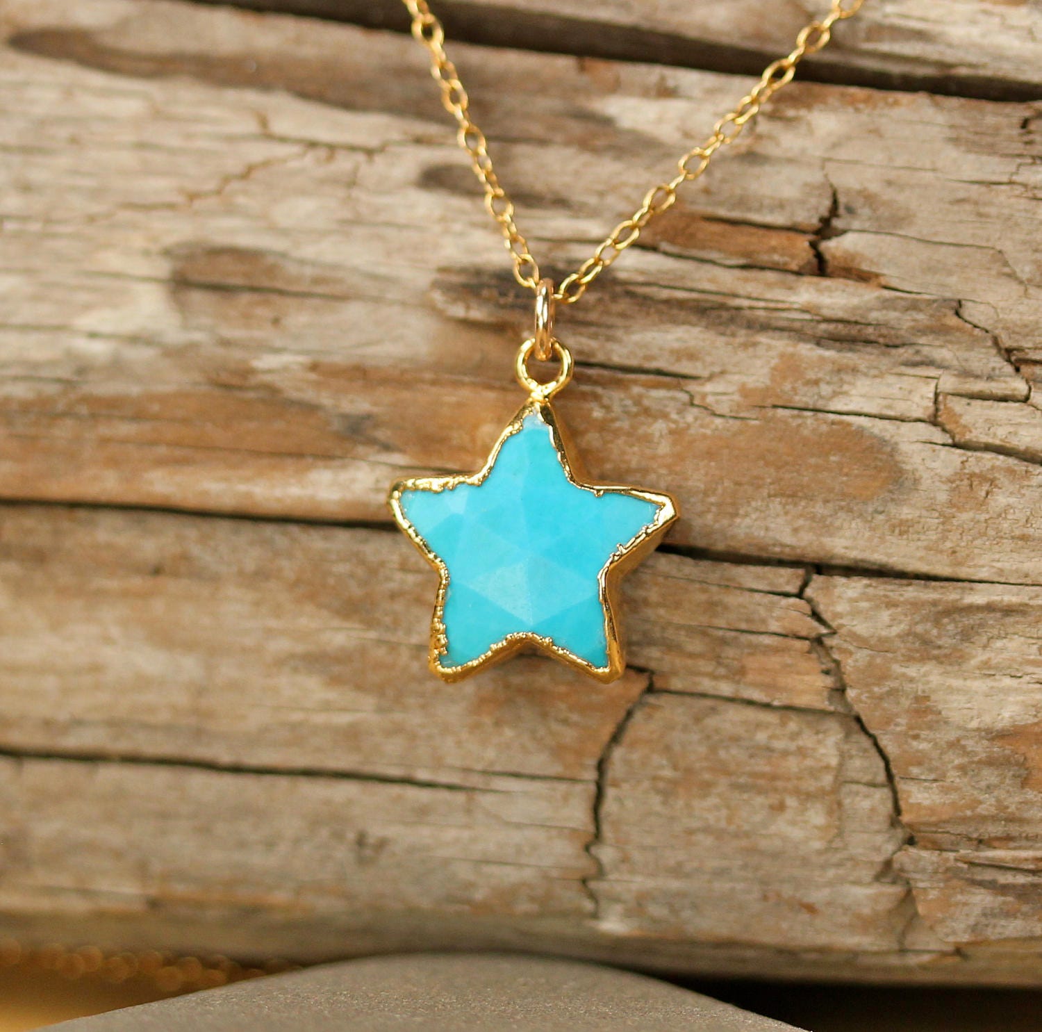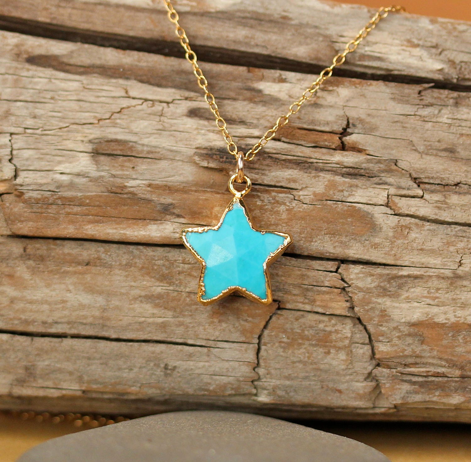 Turquoise star necklace, aqua star necklace, gold star pendant, friendship necklace, turquoise jewelry, layering necklace, boho necklace - TQS