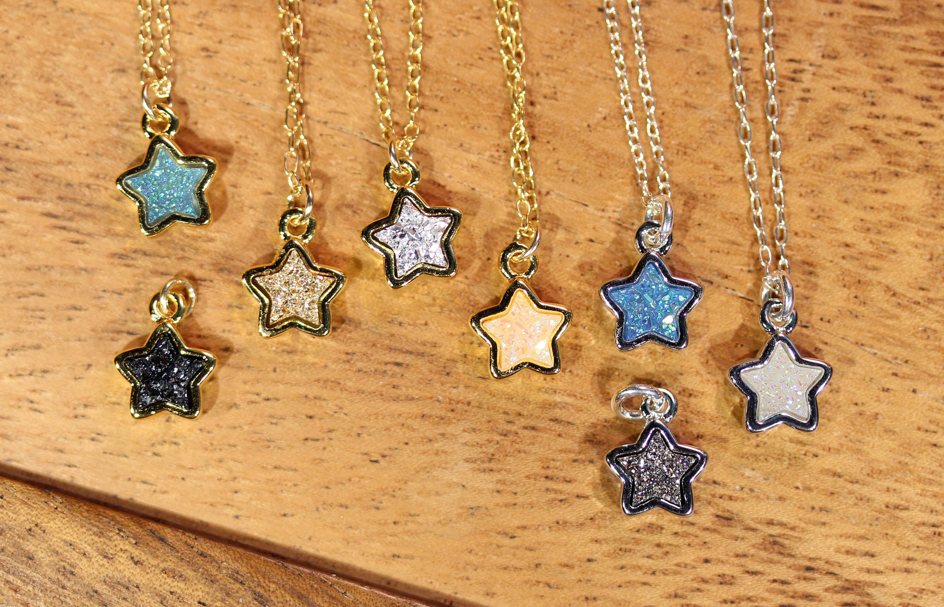 Tiny star necklace, druzy star charm, gold star pendant, sparkly star druzy jewelry, twinkly crystal necklace, 14k gold filled chain