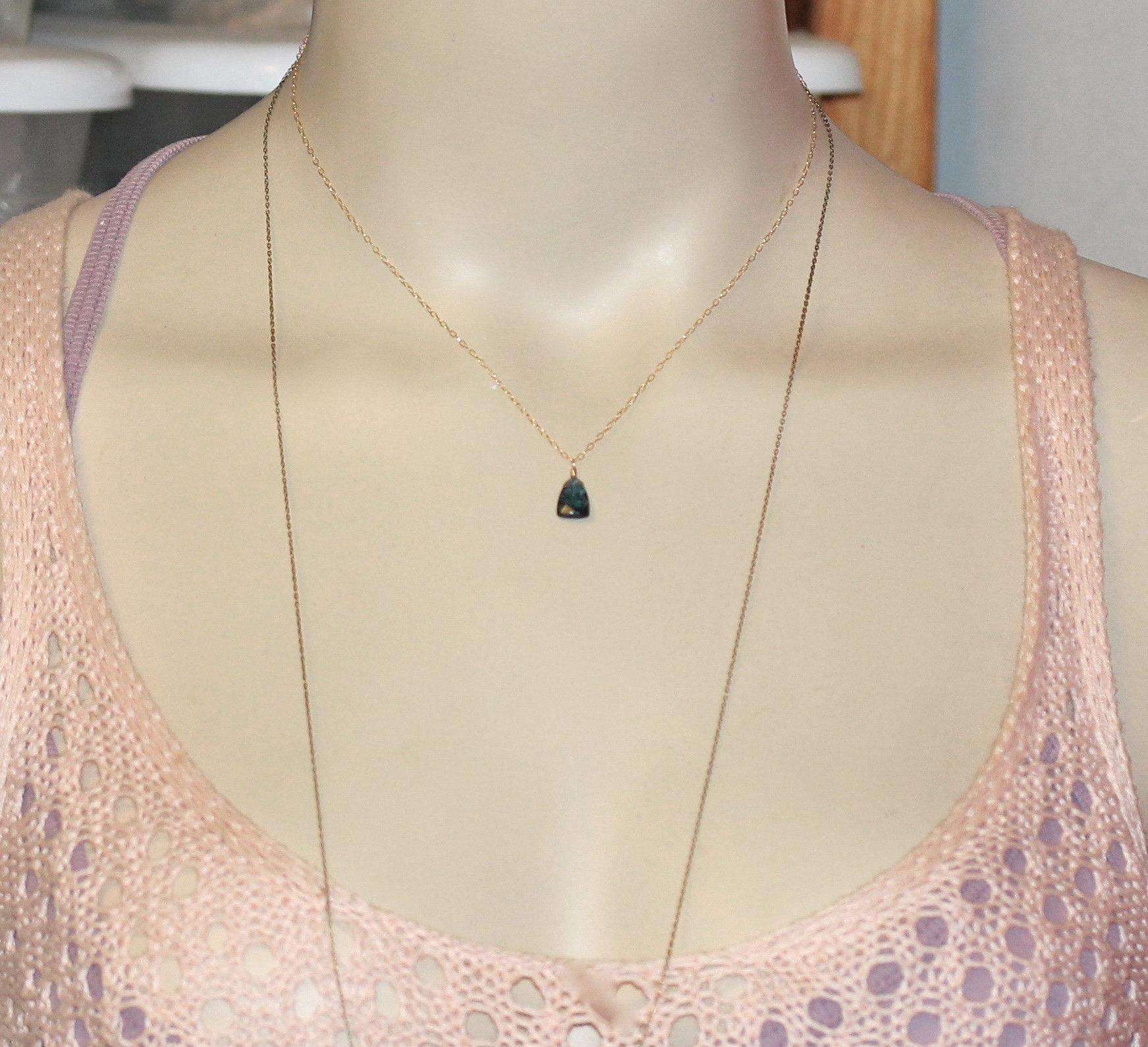 Kyanite necklace, blue crystal necklace, blue kyanite pendant, triangle, royal kyanite on a 14k gold filled chain
