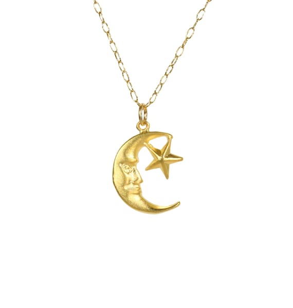 Moon necklace, gold moon pendant, smiling moon jewelry, celestial necklace, happy necklace, a gold moon charm on a 14k gold filled chain
