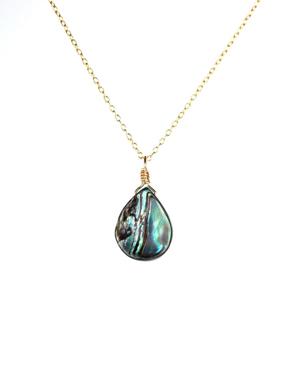 Teardrop Abalone Shell Necklace: Surfers Pendant, 14k Gold Filled Chain